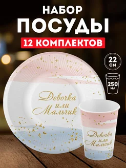 Одноразовая посуда для праздника Гендер пати тарелки стаканы