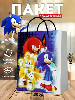 Подарочный пакет Соник большой детский упаковка для подарка