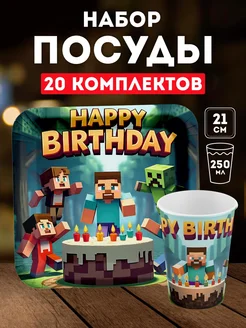 Одноразовая посуда для праздника Майнкрафт набор 20 персон