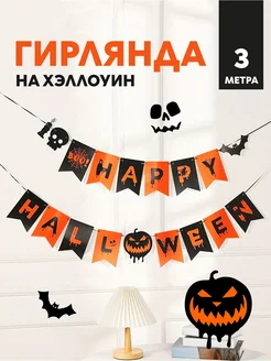 Гирлянда на Хэллоуин Happy Halloween растяжка бумажная