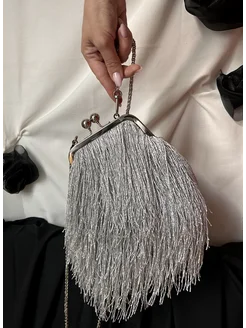 Клатч с бахромой серебристый