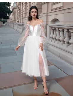 Свадебное платье миди с корсетом