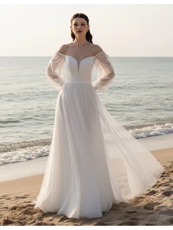 Платье свадебное с открытыми плечами