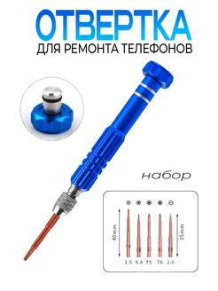 отвертка для ремонта телефонов 5 насадок синяя