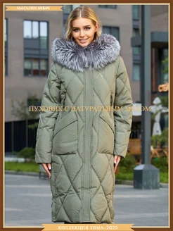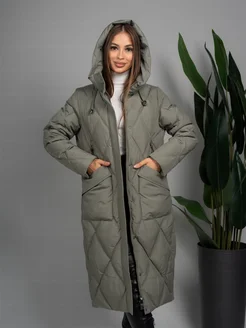 Пуховик женский зимний длинный Хаки БИОПУХ