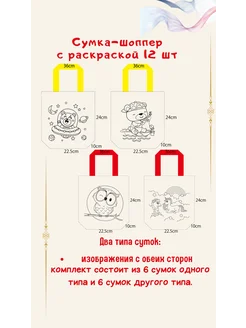 Сумка-шоппер с раскраской 12 штук