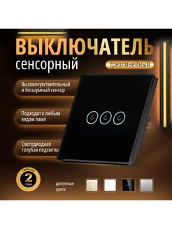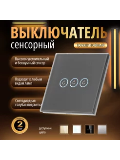 Умный выключатель трехклавишный сенсорный Wi-Fi