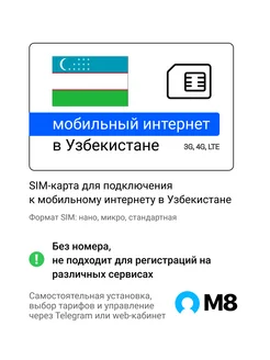 Пластиковая SIM-карта для Узбекистана мобильный интернет