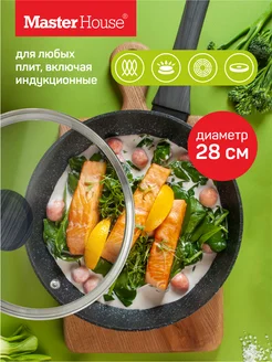 Сковорода с крышкой 28 см индукционная мраморная каменная