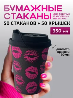 Стаканы бумажные одноразовые 350 мл для кофе с крышкой 50 шт