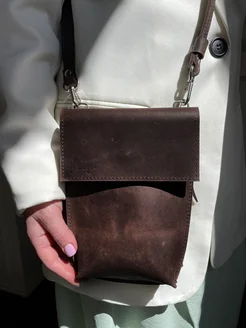 Сумка для телефона маленькая натуральная кожа