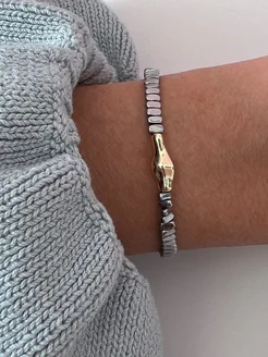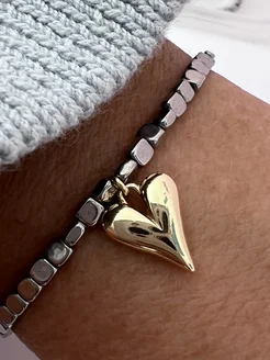 браслет из гематита на руку с сердцем