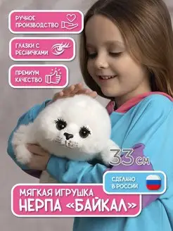 Мягкая игрушка нерпы «Байкал» с ресницами - 33 см