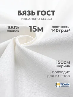Ткань бязь белая для рукоделия и шитья 15 метров