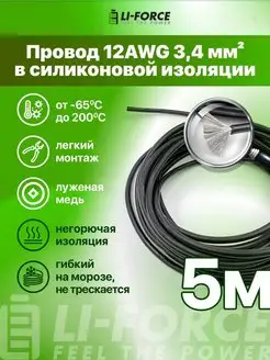 12AWG 3,4 мм² Провод электрический медный в силиконе 5m