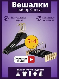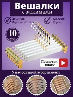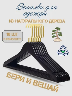 Вешалки-плечики деревянные с зажимом, набор 10 штук