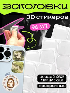 Стикеры наклейки эпоксидные прозрачные 3D 96 шт 3 х 3 см