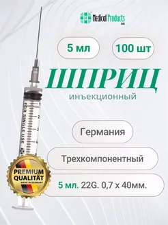 Шприц 5 мл Германия одноразовый 100 шт, SFM