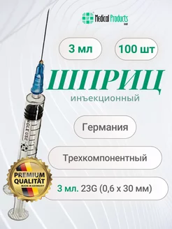 Шприц 3 мл Германия одноразовый 100 шт, SFM