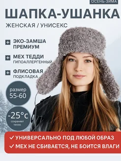 Ушанка из экомеха и экозамши