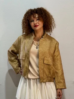 Бомбер жакет оверсайз твидовый с пайетками блестящий осенний