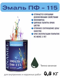 Эмаль ПФ-115 Простокрашено Темно-зеленая 0,8 кг