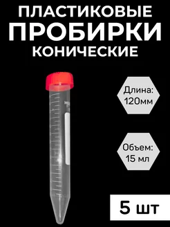 Пробирка пластиковая коническая 15 мл с крышкой, 5 шт