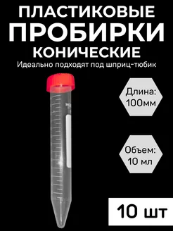 Пробирка пластиковая коническая 10 мл с крышкой, 10 шт