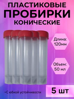 Пробирка пластиковая коническая 50 мл с крышкой, 5 шт