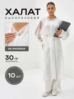 10 шт, Халат медицинский одноразовый смотровой на кнопках