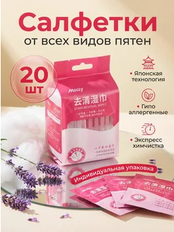 Салфетки от пятен на одежде влажные пятновыводящие 20 штук