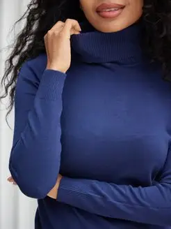 Водолазка женская кашемировая синяя с горлом базовая шерсть