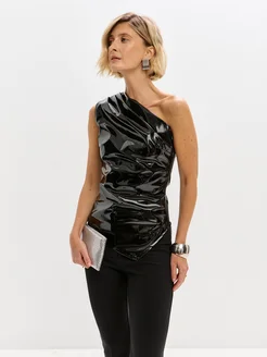 Топ корсет кожаный вечерний с драпировкой на молнии