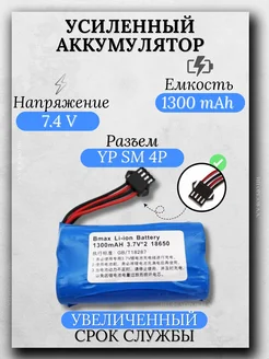 Аккумулятор 7.4V 1300mAh Li-Ion 18650, разъем YP SM 4P