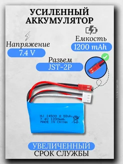 Аккумулятор 7.4V 1200mAh Li-Ion 14500, разъем JST - 2P
