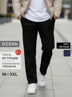 Штаны спортивные прямые осенние теплые на резинке карманами