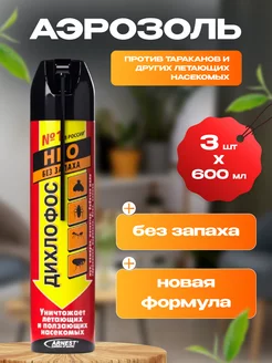 Аэрозоль от тараканов, моли и других насекомых, 3шт по 600мл