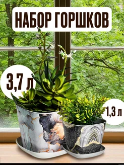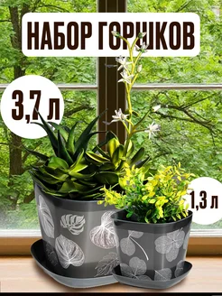 Горшки 2 шт. 1,3+3,7 л с поддоном для цветов и растений