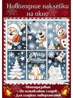 Наклейки новогодние на окно, многоразовые