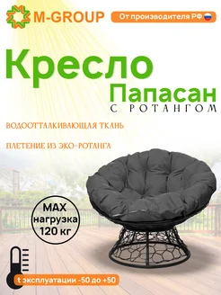 Кресло ПАПАСАН с ротангом чёрное, серая