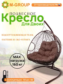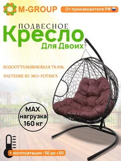 Подвесное кресло ДЛЯ ДВОИХ с ротангом коричневое, коричневая