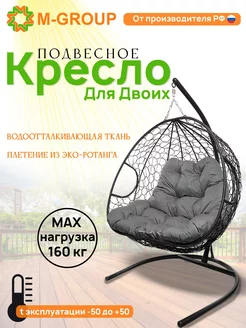 Подвесное кресло ДЛЯ ДВОИХ с ротангом чёрное, серая