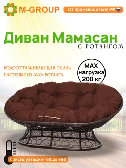 Диван МАМАСАН с ротангом коричневое, коричневая подушка