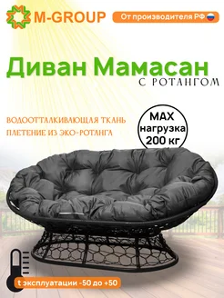 Диван МАМАСАН с ротангом чёрное, серая подушка