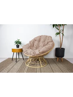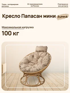 Кресло ПАПАСАН Home мини с ротангом бежевое, подушка Лен
