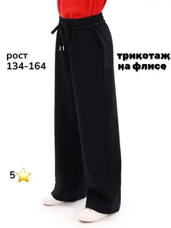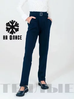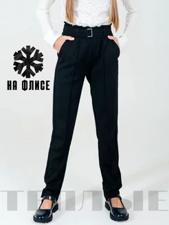 Утепленные школьные брюки трикотажные с начесом на резинке