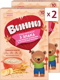 Каша детская мол. злак овс.хлоп кусоч.бан,200г, 2шт