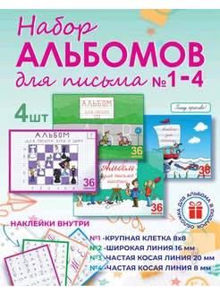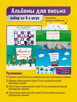 Альбомы для письма, большие прописи с наклейками № 1-4, 4 шт