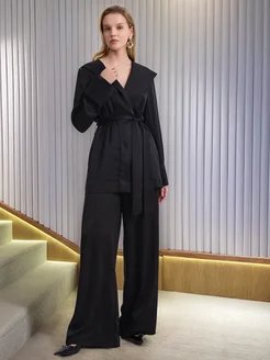 Брюки палаццо шелковые черные