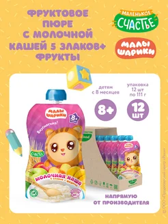 Пюре детское фруктовое с молочной кашей 5 злаков 12 шт